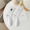 Zhuji Women's Trendy Embroidered Letter Mid-Calf Socks - College Style, Spring & Autumn Versatile Sports Socks