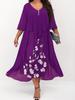 Fashion Women's Casual V-Neck Printed Long Sleeve High Waist Printed Dress