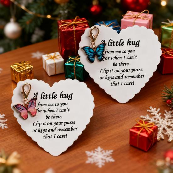 Connessione sincera: Accompagnato da un biglietto commovente che esprime "Un piccolo abbraccio da me a te per quando non posso esserci...", questo ciondolo a farfalla funge da promemoria tangibile di amore e supporto emotivo per i tuoi cari.