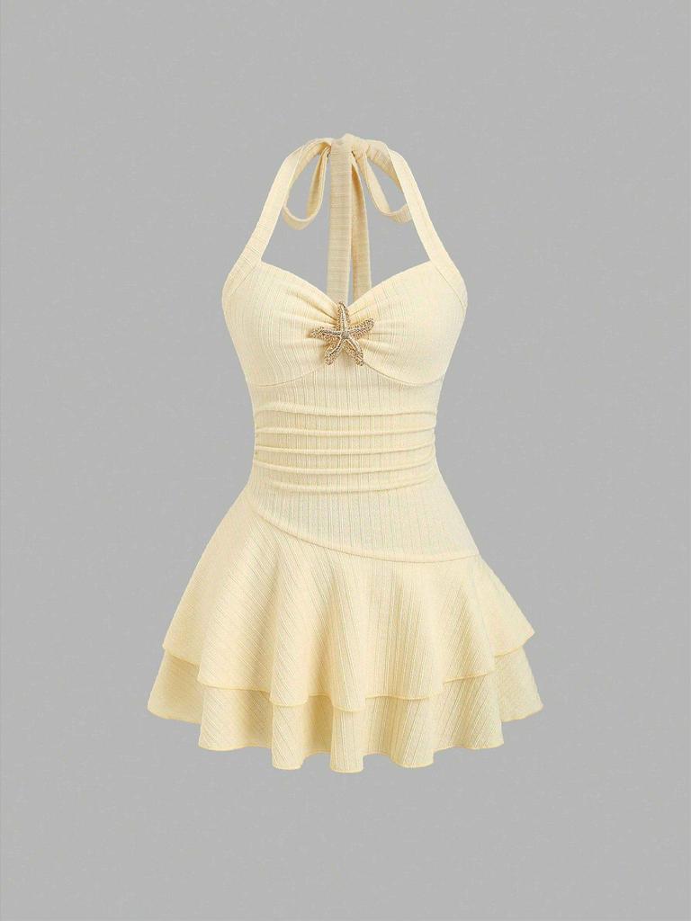 Women's Elegant Textured Spaghetti Strap Ruffle Mini Dress