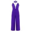 Girls Color Block Jumpsuit Sleeveless Bodysuit Metallic Patchwork Rhinestone Decoration Stage Performance Costume