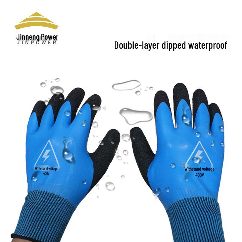 Jineng 400V Low Voltage Insulated Electrician Gloves - Anti-Shock, Full Dip Molded
