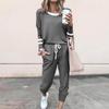 Women's Fashion Loose Color-Block Striped Long-Sleeve Round-Neck Drawstring Sports Casual Top And Pants Two-Piece Set — acquista al miglior prezzo sul negozio online Joom