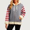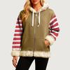 Women's Comfortable Loose Fashion Casual Striped Print Long Sleeve Pockets Hooded Sweatshirt Jacket