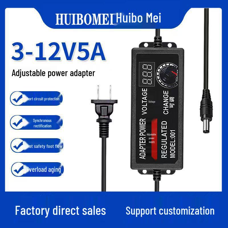 Adjustable 3-12V 5A Power Supply with Display, 60W Stepless Voltage Regulator.