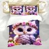 Cute Owl Pattern 3D Printed Duvet Cover Cartoon Animal Style Bedding Set Pillowcases Polyester Soft Comfortable Quilt Cover Set
