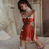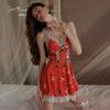 Rose-Inspired Sexy Sheer Mesh Christmas Lingerie Set 4930: Elegant Low-Cut Temptation Slip Dress