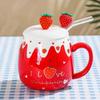 Korean version cute water cup boys and girls ceramic cup with lid spoon large capacity mug office coffee breakfast cup