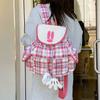 Cute sweet cartoon doll backpack pink and white plaid niche design girl bag student backpack gift