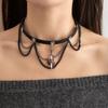 Corss Halloween Skull Choker Skeleton Tassel Beaded Necklace Hiphop Y2K Leather Necklace Unisex