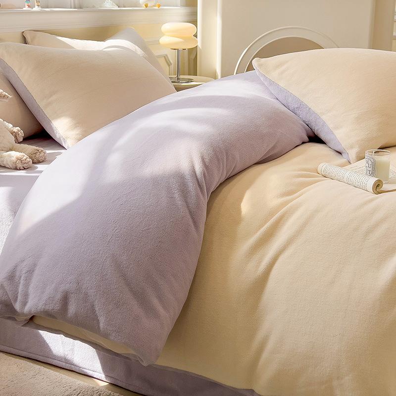 Thickened Milk Fleece Four-Piece Set, Solid Color Coral Fleece Bed Sheet Quilt Cover, Fleece Bedding Three-Piece Set