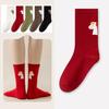 Socks: Cartoon Horse Design In Contrasting Colours Retro-inspired, Versatile And Fun Breathable Mid-calf Length For Women