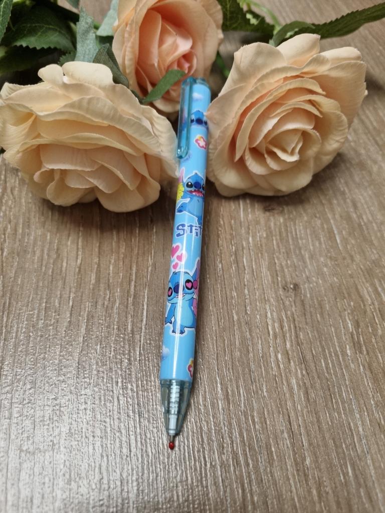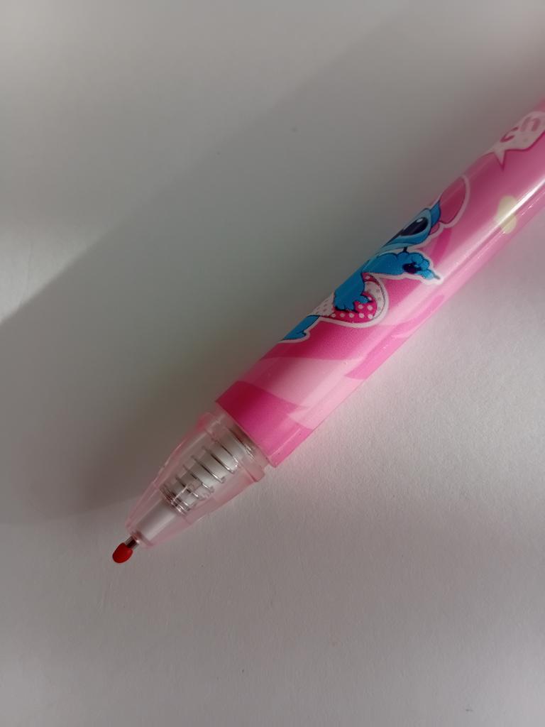 Penna gel con meccanismo a pulsante in stile Lilo e Stitch Colore nero. Sull'asta è presente una membrana protettiva. Buona qualità. Mi raccomando 🤗