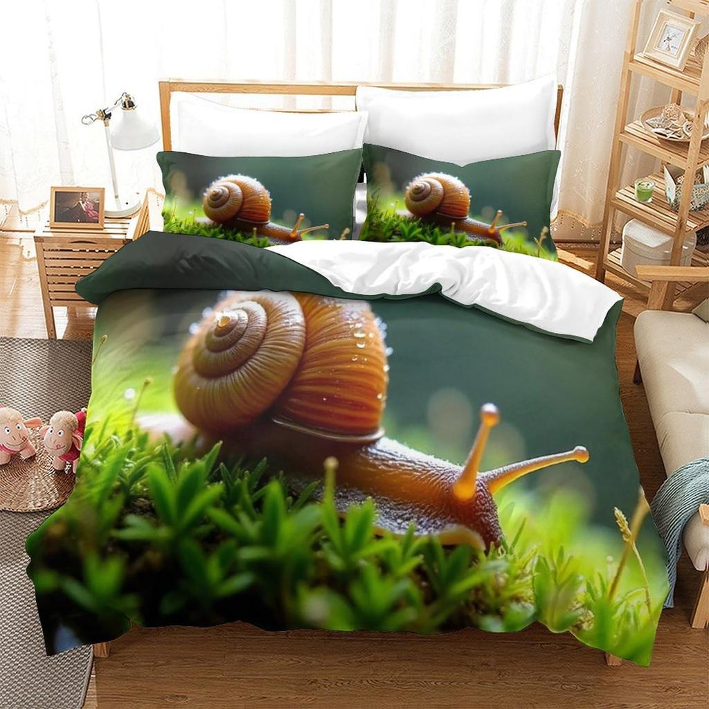 Snail Duvet Cover Sets For Kids Queen Size Lightweight Down Quilt Covers Bedroom Decor 2 Pillowcases 1 Duvet Cover No Comforter