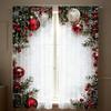 2 Panels Christmas Curtains 2D Flat Printed Balls Curtain with Snowflakes And Pine Branches Holiday Window Drapes Decoration for Living Room Decor