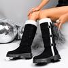 Women's Buckle Detail Knee High Boots - Faux Fur Lined Casual Boots with Hidden Wedge Heel, Low Heel Winter Fashion Boots