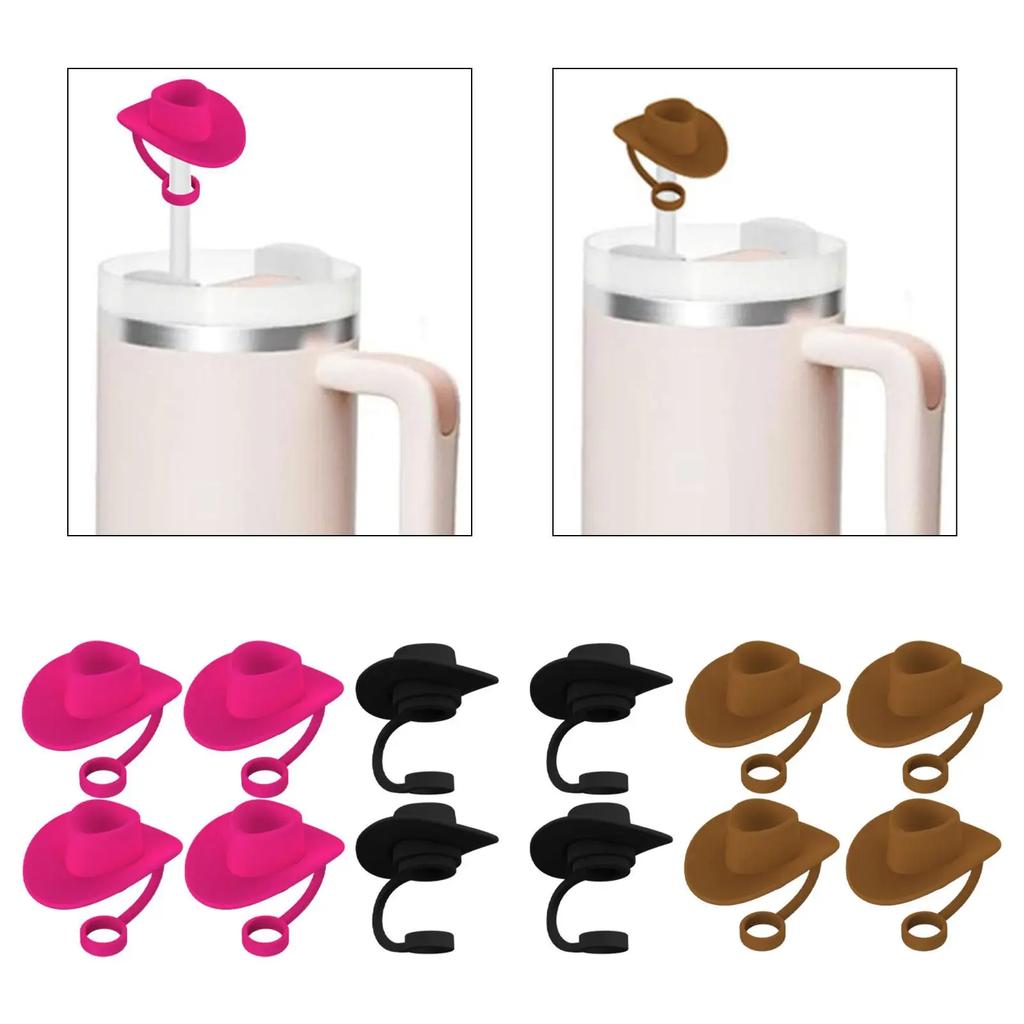 4 Pieces Straw Covers Cap Novelty Sturdy Straw Toppers Reusable Cowboy Hat Shaped for Camping Home Hiking Picnic Kitchen