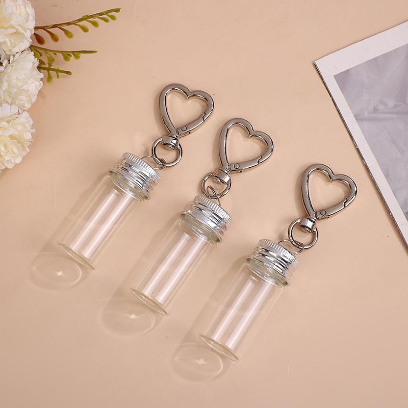 7/10Ml Storage Bottle With Love Keychain Transparent Glass Bottles Aluminium Cap Empty Jars Liquid Containers Dispenser Decor