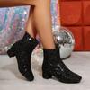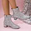 Women's Glitter Sparkly Booties Chunky Heels Boots Side Zipper Block Heeled Short Boots Wedding Bridal Party Dress Shoes