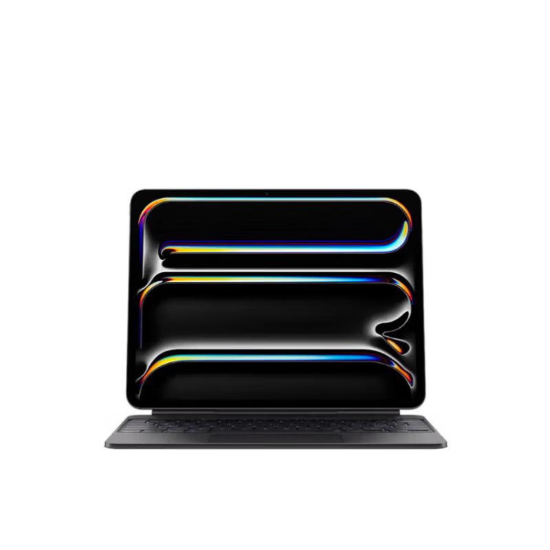 The Apple Magic Keyboard in black is designed for the 13-inch iPad Pro (M4/M5 chip models). It features a backlit, capacitive design, offering a comfortable and responsive typing experience. This wireless Bluetooth keyboard connects to one device and is fully compatible with iOS.