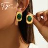 Youthway Vintage Light Luxury Exaggerated Green Opal Oval Earrings Pvd Plated High Quality Chic Jewelry Waterproof