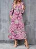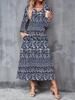 Vestito casual da donna autunno e inverno 2025, con stampa retrò in 3D, maniche lunghe, scollo a V, abiti a trapezio