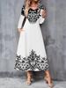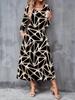 Vestito casual da donna autunno e inverno 2025, con stampa retrò in 3D, maniche lunghe, scollo a V, abiti a trapezio