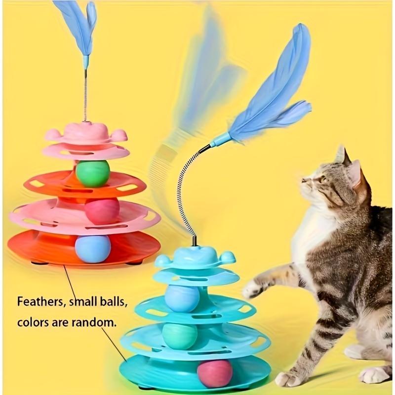 2025 pattern Artificial Feather Cat Rotating Toy Interactive Fun Toy, 3-Layer Rotating Tower with Three Small Balls and Feathers — acquista al miglior prezzo sul negozio online Joom