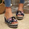 Fashion Bohemia Flower Fabric Strap Wedge Heel Sandals Women Summer Round Toe Super High Heel Slides Casual Hemp Sole Beach Slippers