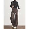 FAESSLIN Women's Slim Fit High-Waist Thickened Wool Blend Flared Suit Pants