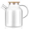 Caraffa in Vetro con Coperchio in Bambù 1800ml Caraffa Acqua in Vetro Multifunzionale Resistente al Calore Brocca in Vetro con Manico per Tè Caldo Freddo