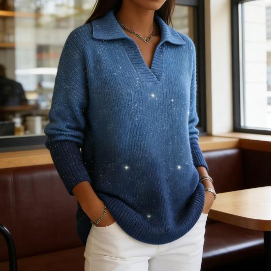Maglione da Donna con Scollo a Revers Manica Lunga Dettaglio Paillettes Scintillanti Design Degradé Vestibilità Larga Top Lavorati a Maglia Vestibilità Larga Maglieria Invernale — acquista al miglior prezzo sul negozio online Joom
