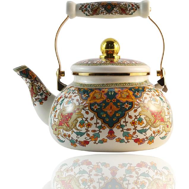 Floral Enamel Tea Kettle Vintage Gold Beige Teapot Colorful Boho Hot Water Coffee Kettle Pot 2.5L Porcelain Tea Pot with Ceramic Handle for Stovetop — acquista al miglior prezzo sul negozio online Joom