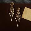 Vintage Golden Plated Inlaid Imitation Pearl Pendant Earrings Women's Elegant Banquet Jewelry Accessories Dangle Earrings Gifts