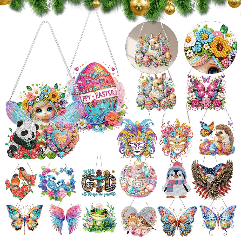 Acrylic Special Shape Easter Egg 5D DIY Diamond Painting Dots Pendant Rhinestone Diamond Art Pendants for Garden Window Decor