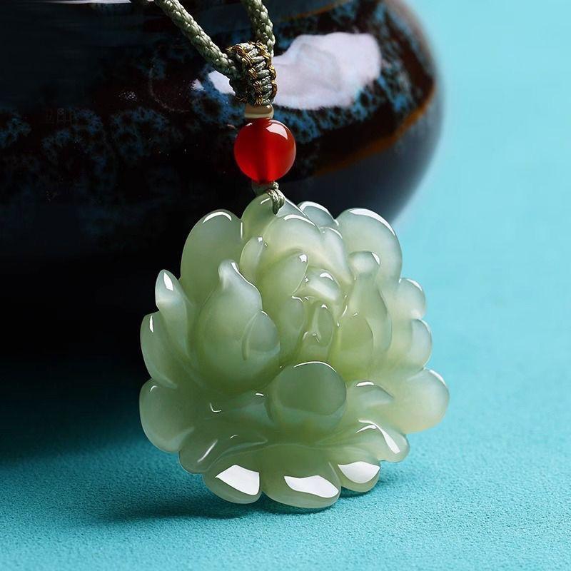 Pendant Lotus Blooming Wealth Lotus Jade Necklace for Men and Women