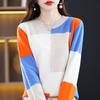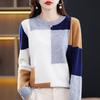 Updated Autumn and Winter Color-blocking Round Neck Sweater for Women Trendyable and Versatile Warm Cashmere Sweater Soft and Comfortable Base Top