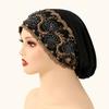 Muslim Lace Pearls Hat Caps Mesh Fabric Bead Tube Paired With An Acrylic Diamond Thread Embroidered Hat For Dubai Arabian Women