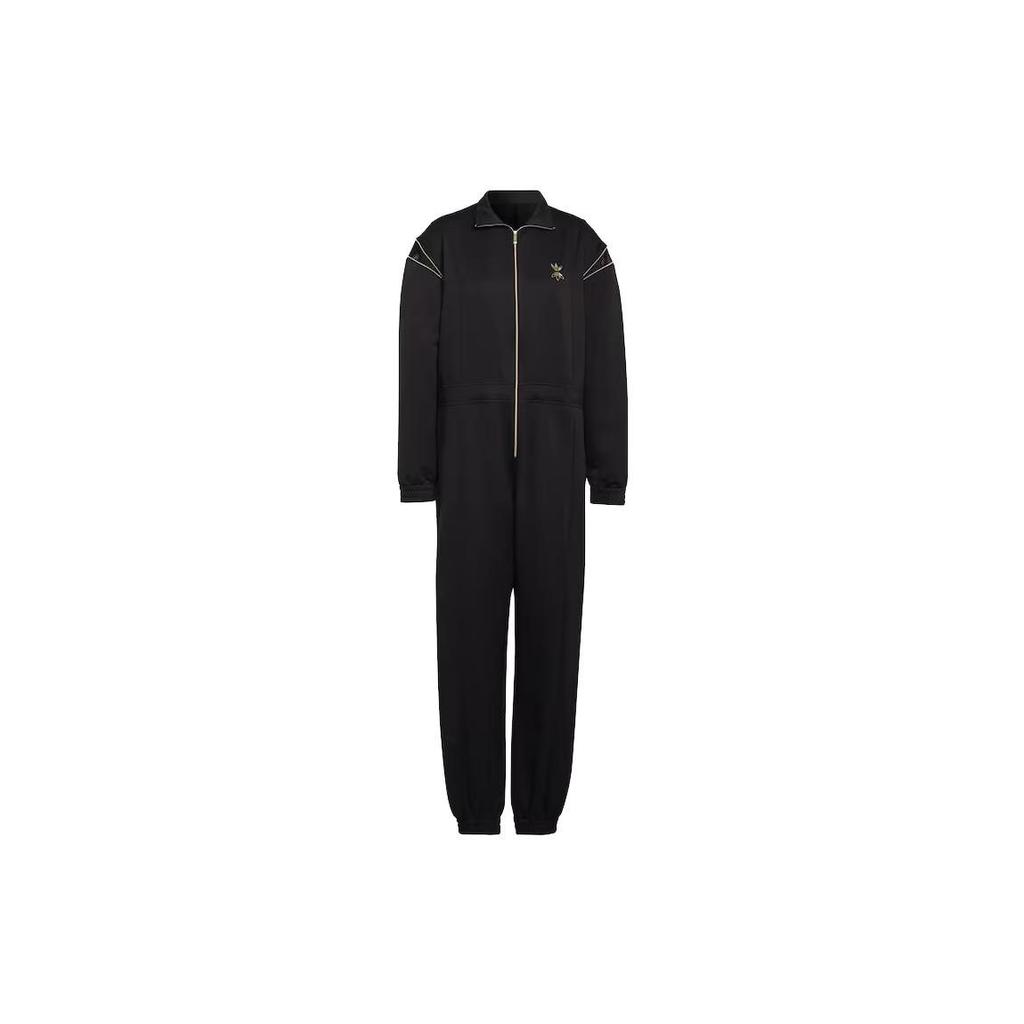 Adidas Originals Solid Color Zip Collar Long Sleeve Jumpsuit Women jumpsuit Black HG6682