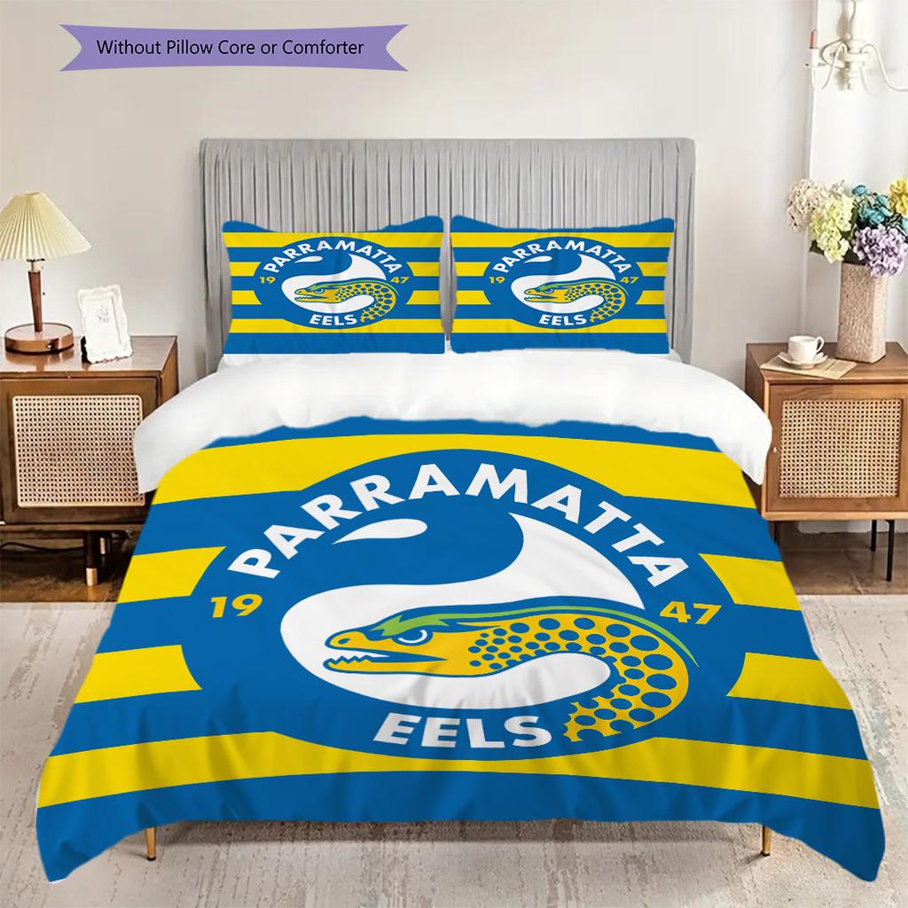 Parramatta Eels Pattern Bedding Quilt Set Quilt Cover Pillowcase Home Decoration Birthday Gift (1 * duvet cover + 2 * pillowcase, without core)