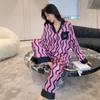 Ice Silk Pajamas for Women Warm Season and Autumn New Long-sleeved Cardigan Simple Ink Home Wear Pajamas Set