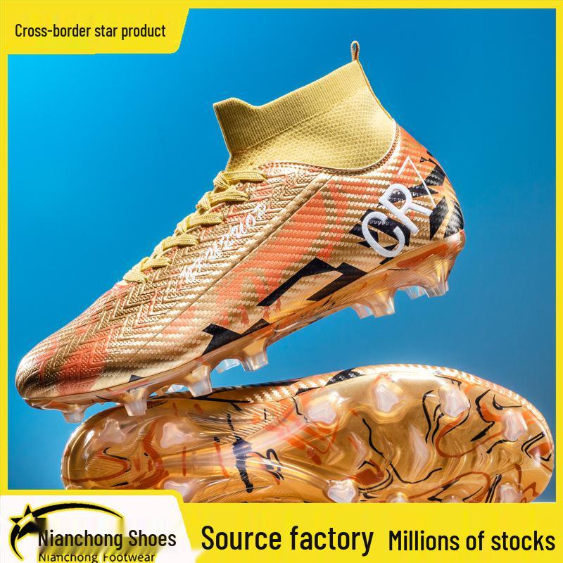 Discover optimal performance on the field with these high-top football shoes, expertly designed for artificial turf. Perfectly crafted for both students and adults, these shoes offer an ideal choice for training sessions and competitive matches. The breathable mesh lining ensures comfort, while the durable polyurethane sole provides excellent grip and stability. With long spikes for enhanced traction, these shoes are engineered to support your game, offering both functionality and style for all players.