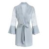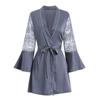 Flare Sleeve Robe Short Kimono Gown Sexy Lace Sleeve Bathrobe Satin Sleepwear Women Bathrobe