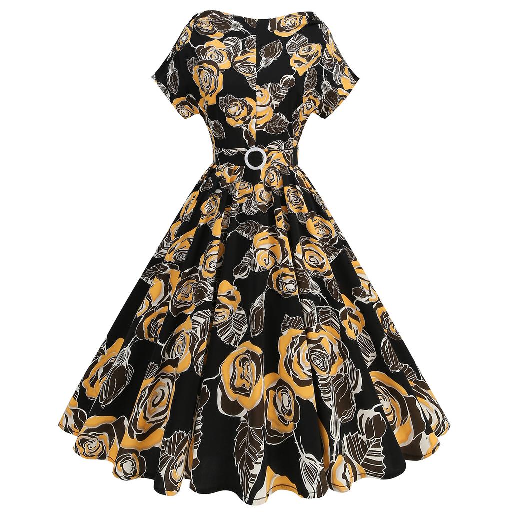 Fashion Women's Casual V-Neck Printed Long Sleeve High Waist Printed Dress — acquista al miglior prezzo sul negozio online Joom
