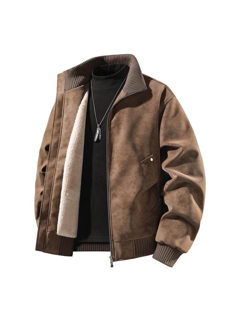 This men's jacket offers a blend of retro American style with modern comfort, perfect for motorcycle enthusiasts and workwear aficionados alike. Designed with a stand neckline, it provides a sleek and distinguished look. The fleece lining ensures warmth during cooler rides, while the loose and thickened construction offers both durability and ease of movement. Ideal for layering over casual or work attire, this jacket is both functional and stylish, making it a versatile addition to any wardrobe.