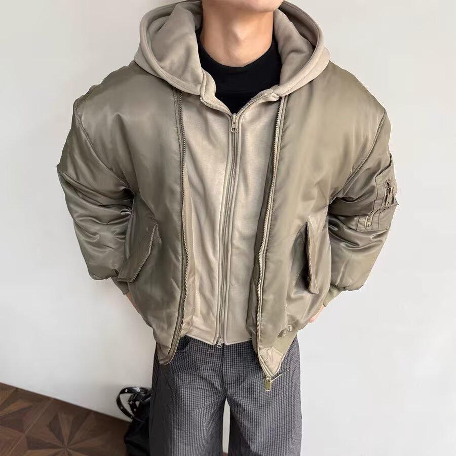 Unisex Korean Style Hooded Pilot Jacket - Faux Two-Piece Baseball Design for Autumn/Winter