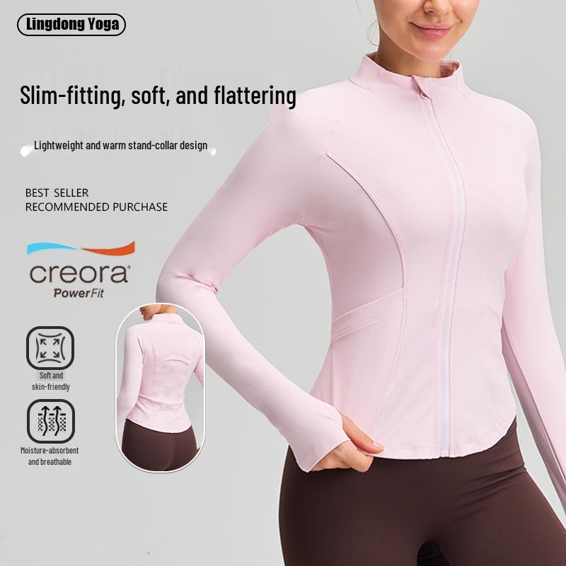 Women's Slimming Long Sleeve Stand Collar Sports Top - Elastic and Elegant Yoga & Running Fitness Jacket