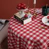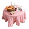 Tablecloth Farmhouse Style Plaid Pattern Ruffled Edge Tablecloth Round Shape Soft Cotton Linen Fabric Cloth Table Cover