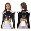S-4XL Womens Singer Dance Cosplay Costume Long Sleeve Shoulder Epaulet Front Zipper Metallic Patchwork Sequin Crop Top Jacket
