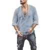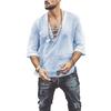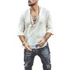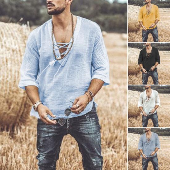 Questa camicia da uomo è realizzata in cotone di alta qualità, offrendo una sensazione leggera, traspirante e naturale per un comfort che dura tutto il giorno.. Caratterizzato da un design a tinta unita con un elegante scollo a V e dettaglio con laccetto sul petto, combina moda e semplicità senza sforzo.. La vestibilità ampia garantisce libertà di movimento e un look rilassato.